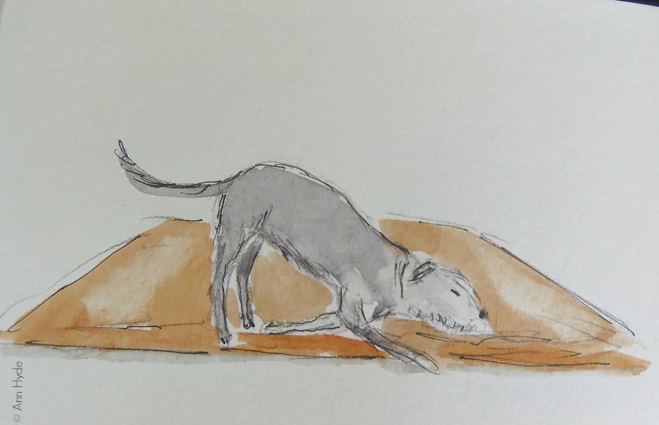 I draw what he gets up to, no matter how the finished drawing looks. I hope you enjoy seeing them......ann